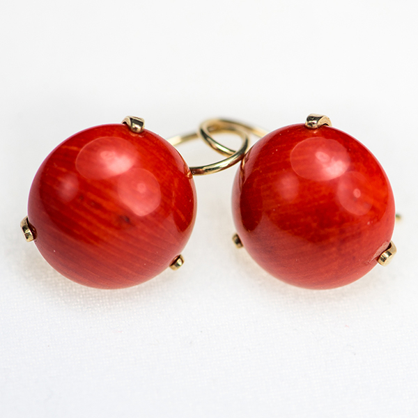 Złote kolczyki z koralem.