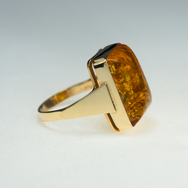 Pierścionek złoty próby 0.585 z bursztynem bałtyckim.